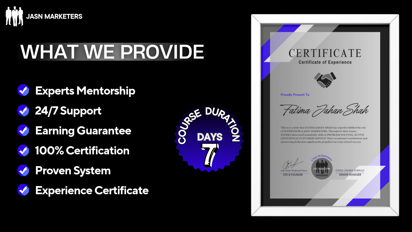 Affiliate marketing is a powerful way to achieve financial freedom and build a flexible, rewarding career. With the Affiliate Marketing Course at Jasn Marketers, you’ll gain the skills, strategies, and confidence needed to succeed. Whether you’re looking to earn extra income or start a full-time business, this course is your gateway to success.